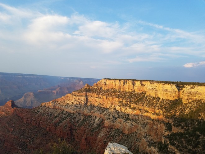 Soon the first long fingers of sunlight reach forth, stretching across the the edges of the Canyon, lighting them afire with the warm glow from the first light of day. Slowly, tentatively, as if not to disturb the goings on in the desert below, the sun begins to reach down the walls of the canyon, lighting the caves and crevices, sending small rodents and lizard racing from the heat they know will soon come.